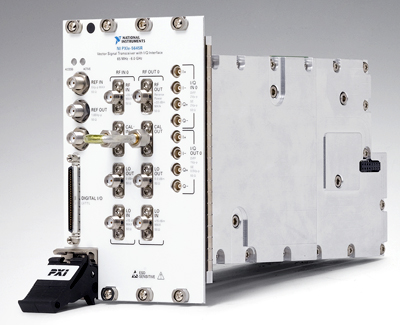 She cited some specific products, noting, “NI continues to expand the bandwidth of modern instrumentation as demonstrated by the NI FlexRIO product line that offers arbitrary baseband waveform generation of up to 2 GS/s (14 bits) and baseband digitization of 1.6 GS/s (12 bits).” In addition, she said, the NI vector signal transceiver (Figure 5) offers up to 200 MHz of instantaneous bandwidth, and the NI Phase Matrix signal analyzer operates up to 26.5 GHz with 350 MHz of instantaneous bandwidth.